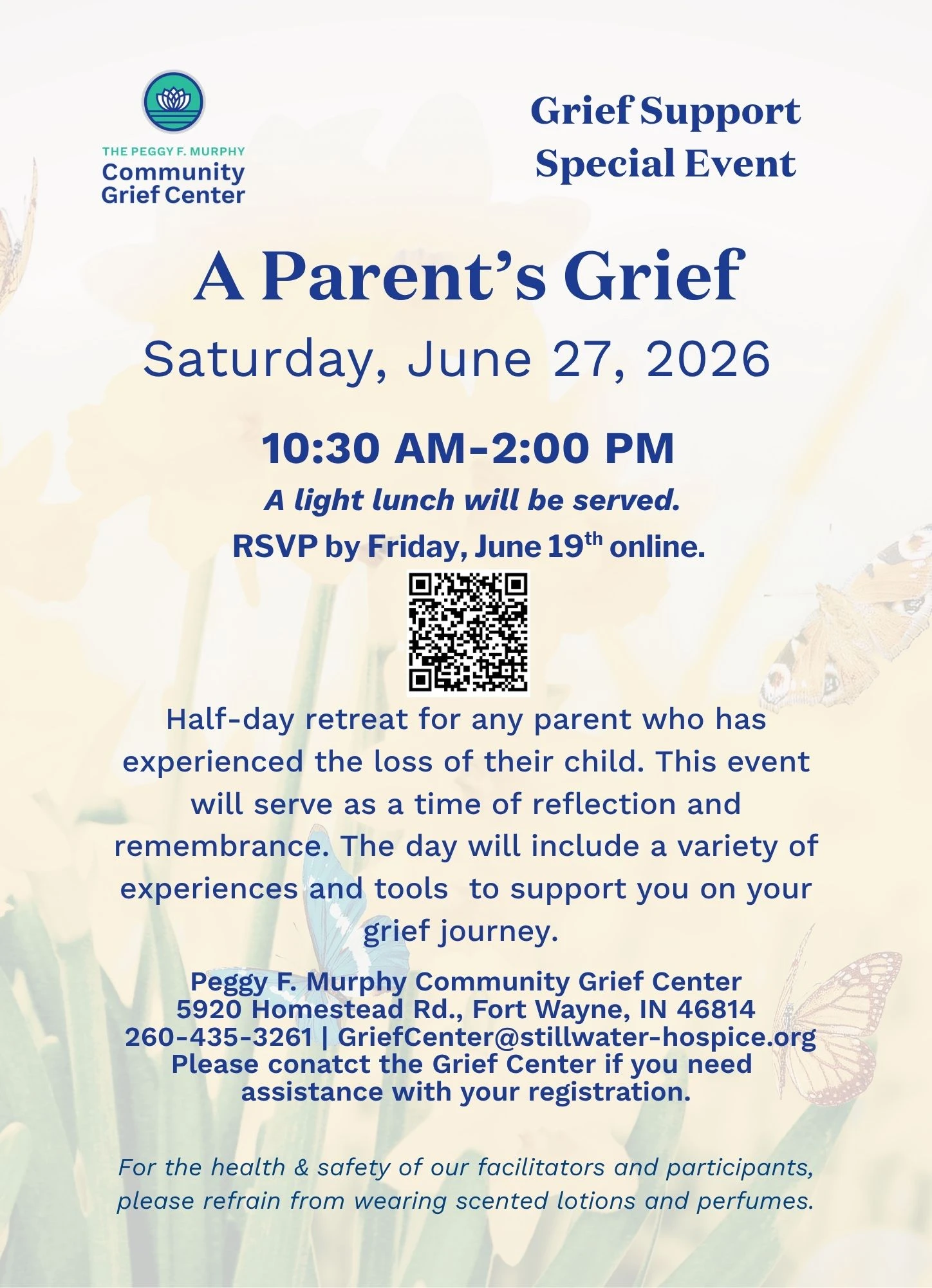 For any loss due to death 2nd & 4th Tuesday of each month • 6-7:30 p.m. Please call (260) 435-3261 or email [email protected] by the Wednesday prior to each meeting to complete the required registration. |