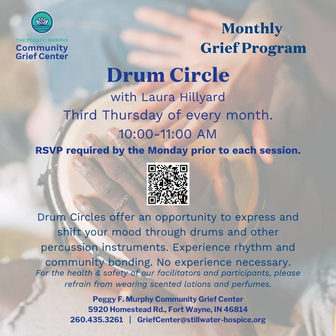 Drum Circles offer an opportunity to express your emotions and shift your mood through drums and other percussion instruments. Experience rhythm and community bonding. No experience necessary. **For the health & safety of our facilitators and participants, please refrain from wearing scented lotions and perfumes.**