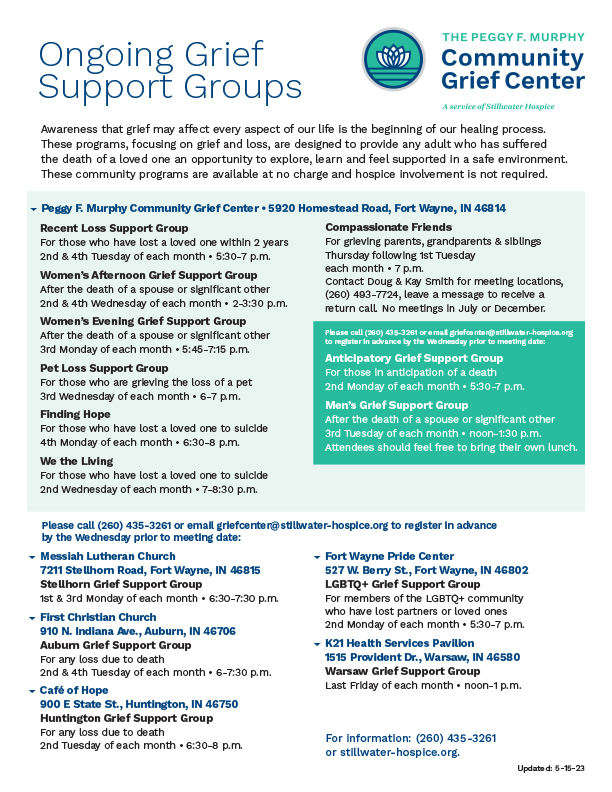Support groups are a vital tool for many as they learn to cope with their grief.